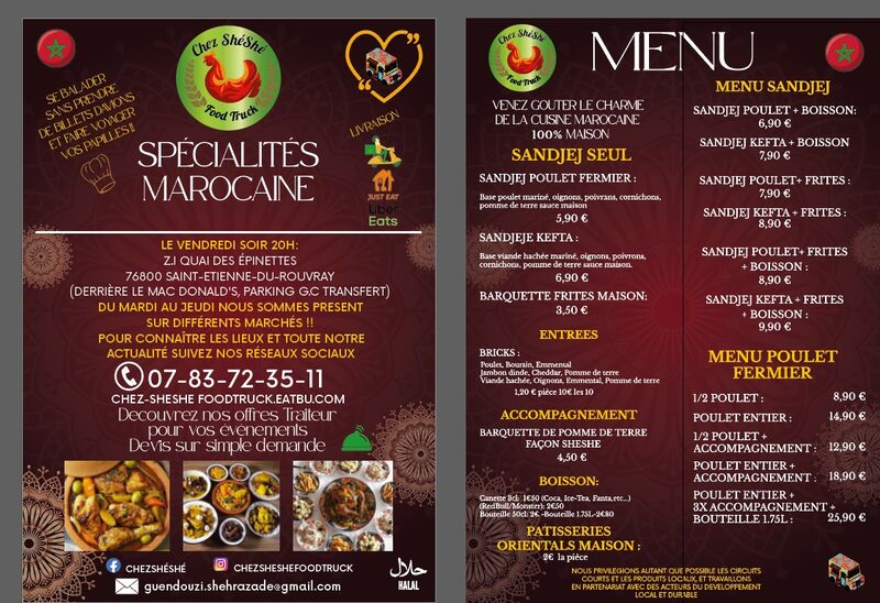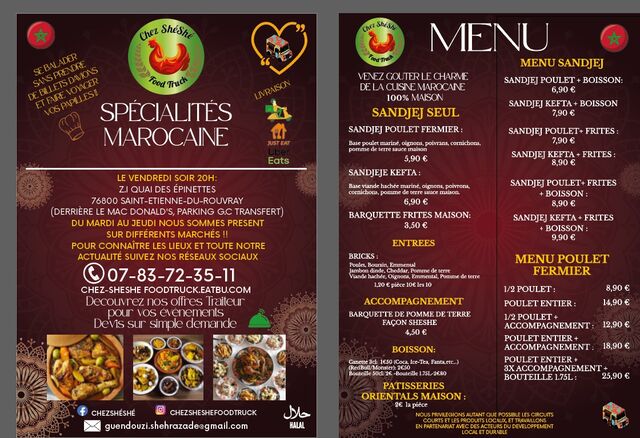 CALL +330783723511Venez goûter le charme de la cuisine marocaine 100 % maison. Pastilla aux poulet fermier et aux amandes, bricks à la dinde,cheddar, viande hachée/emmental revisité ....