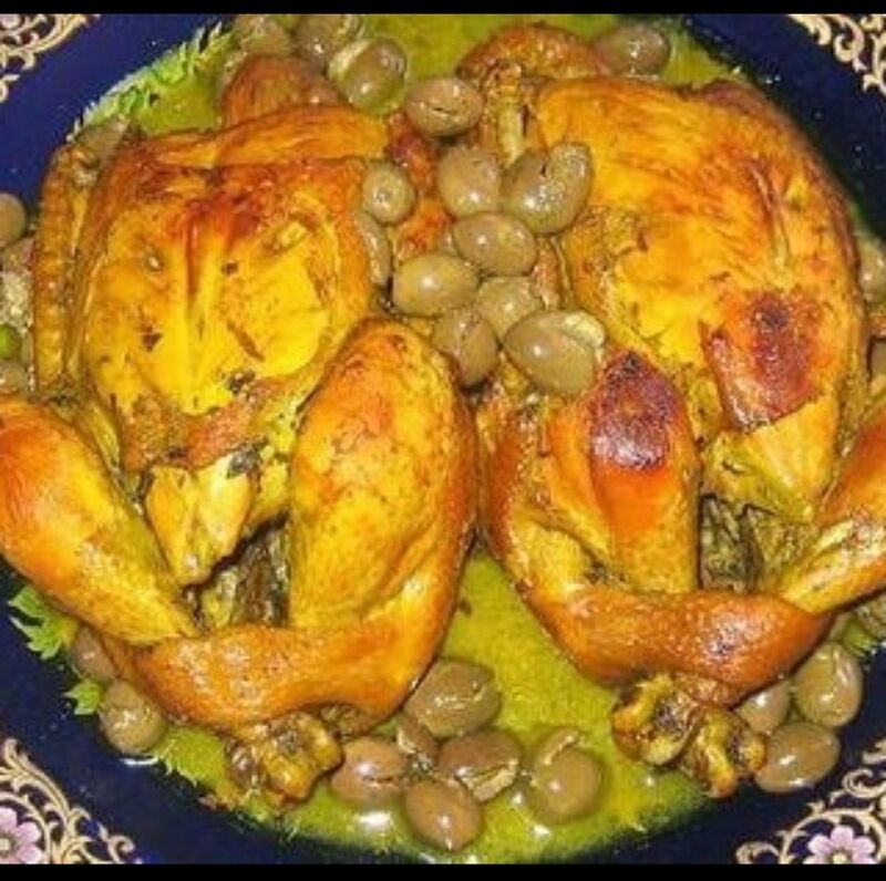 Spécialité savoureux Poulet rôti avec sa sauce Zitounia aux olives, ses accompagnements façon méditerranéenne et pleins d'autres saveurs qui raviront vos papilles ....